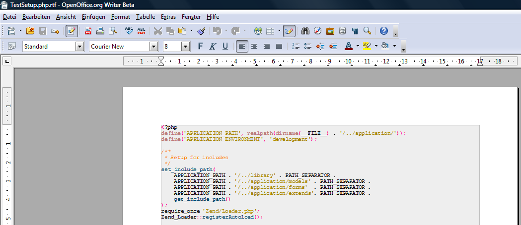 Wir haben uns für Richtext mit den „Acid“ Farben entschieden, im Open Office sieht das dann wie folgt aus :