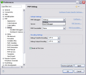 Anschließend ruft ihr das Zend Studio von der Commandline auf (ZendStudio.exe -clean) Ab jetzt habt ihr in der Konfiguration auch die Möglichkeit den XDebug im Zend Studio zu benutzen.