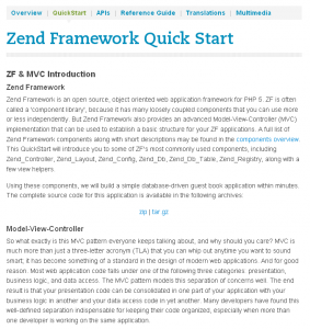 Einzig 2 brauchbare haben wir auftreiben können. Nummer 1 ist das vom Zend Framework Team erstelle Quickstart Tutorial. Dieses bietet den Einstieg anhand eines kleinen Gästebuchs.