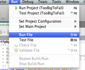 Klickt ihr nun einen Test an und und wählt im Menü „RUN“ -> Run (nicht TEST) läuft nur dieser eine durch. Ohne das Festlegen der PHPUnit.xml klappt das ganze nicht.