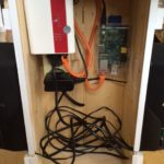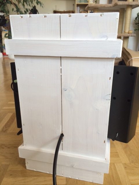 - Die Kiste von hinten anbohren und das Stromkabel einführen.