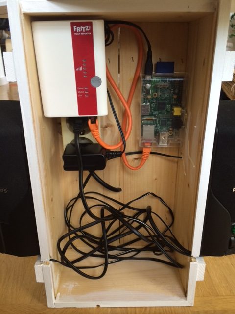 Was uns bisher dazu fehlte, war eine portable Musikbox. Also haben wir in unserer IT-Kiste gekramt und alles Notwendige zusammen getragen und geschraubt.