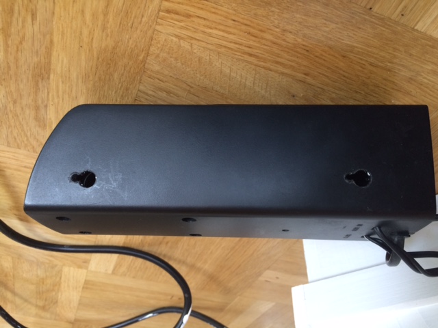 - Natürlich muss der Klinkenstecker auch irgendwo wieder nach Außen geführt werden. Also noch eine Bohrung. Sieht zwar etwas blöde aus, erhöht aber die Flexibilität (siehe Punkt 3).