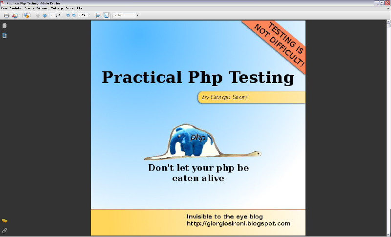 Hallo LimeSpace(r), ein besonderer Leckerbissen präsentiert von „Invisible to the eye“ , ein komplett kostenloses E-Book mit dem Schwerpunkt auf dem Testen von PHP Anwendungen + Bonus Kapitel über Test Driven Development. Download: Practical PHP Testing Lizenziert als Creative Commons.